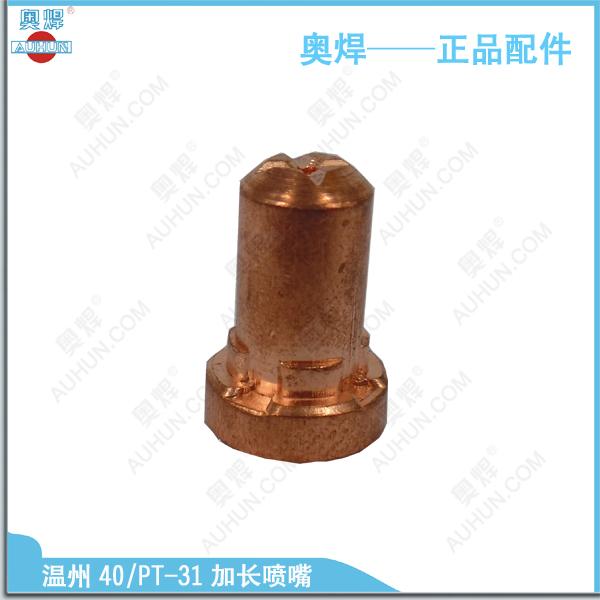 溫州40/PT-31加長噴嘴采用優(yōu)質(zhì)紫銅和精細(xì)加工工藝,使用壽命比普通電極,噴嘴耐用3倍以上,適用于LGK-40型空氣等離子切割機(jī)器上,配合LG-40A切割槍使用。