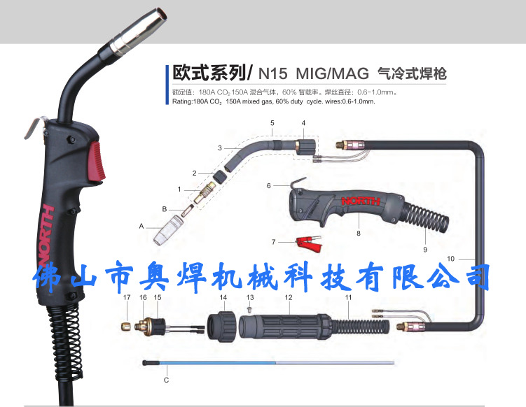 濟南諾斯原裝QTB-160A/N15小手柄推絲焊槍,歐式接口氣冷式推絲二氧化碳焊槍同型號15AK 3米、4米、5米氣保焊槍。公司通過ISO9001:2000國際標準質(zhì)量體系認證,產(chǎn)品通過國家強制CCC認證和歐盟CE認證。